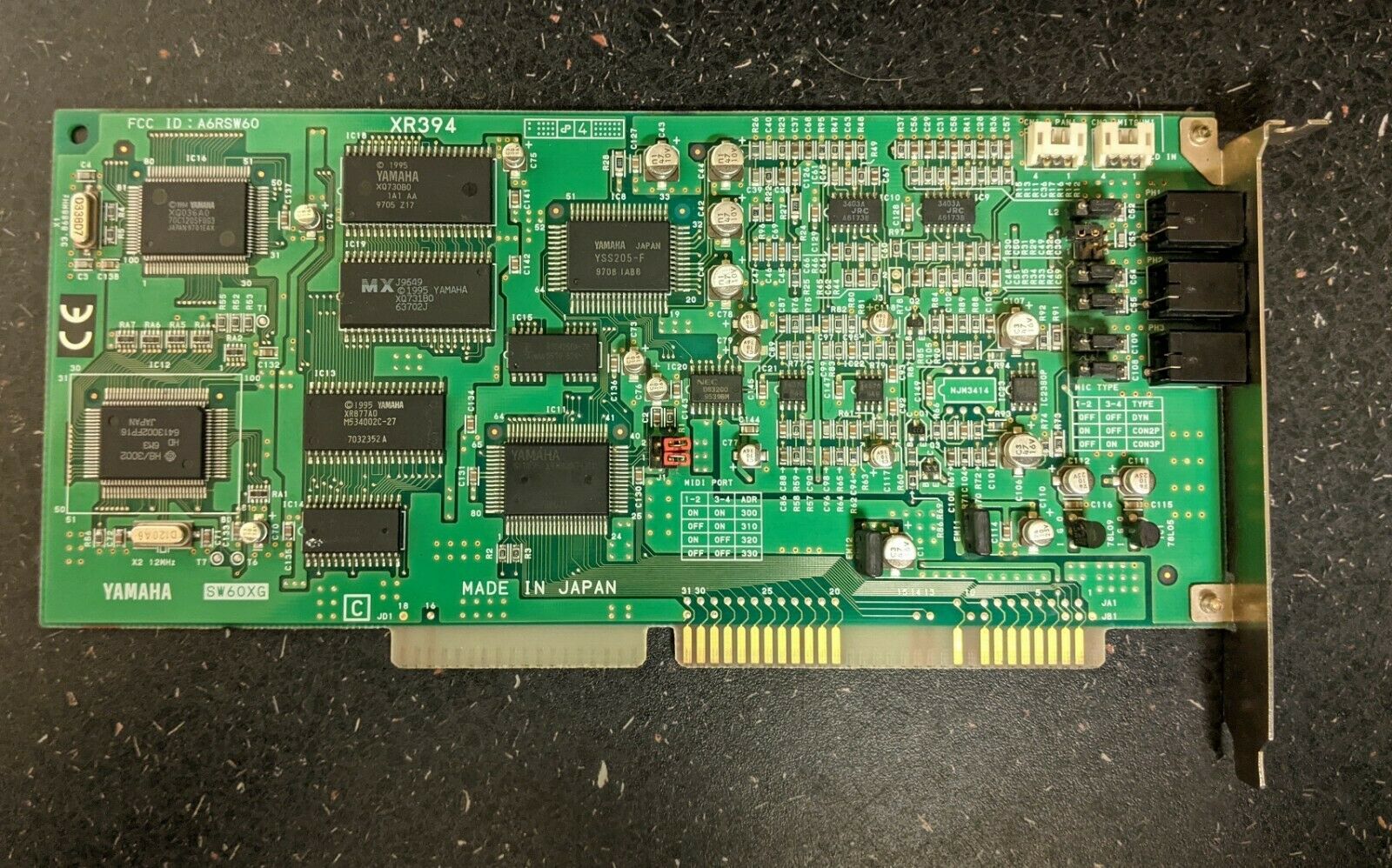 Note that SW60XG does not provide any FM synthesis support - this is a MIDI-only (wavetable) card. Having said that, it does also have a microphone input, line-in and CD inputs that with the use of the provided software can perform realtime editing of analog sound.