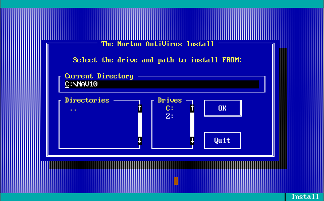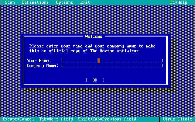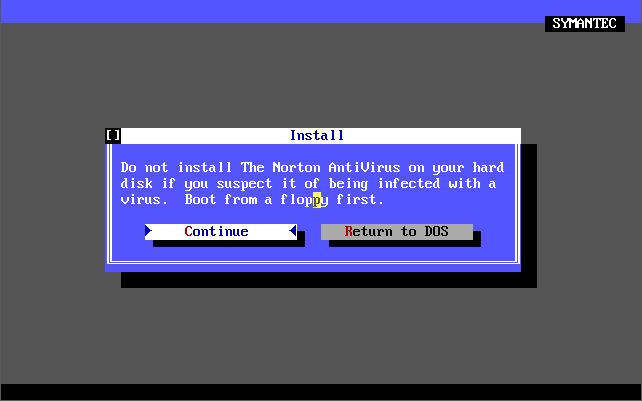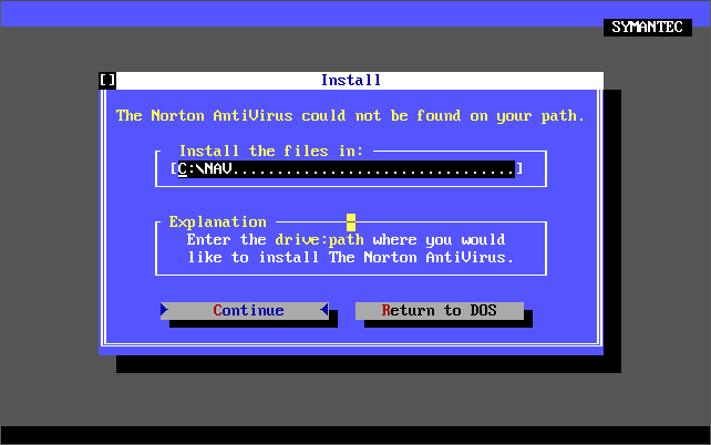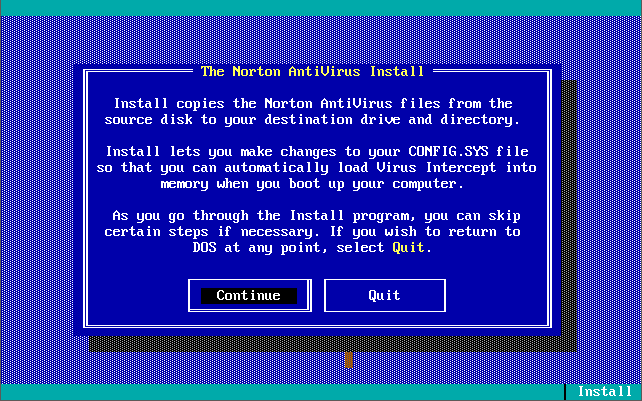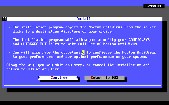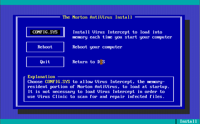 Version 1.0.0 was launched in December 1990. Out of the box, the virus definitions (the 32 KB-sized NAV.DEF file dated 6th December 1990) could detect and remove 142 viruses. The main program was called Virus Clinic. The installer provides you with the option to install Virus Intercept on startup, which is the memory-resident virus portion of Norton AntiVirus.