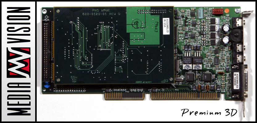 MediaVision Pro 3D - Built on their ProAudio Spectrum 16 technology, MediaVision's Pro 3D card used their new Jazz16 chipset coupled with a Korg Pro Wave wavetable daughterboard which provided some of the best instrument samples money could buy in 1994. They also did a Premium 3D (pictured) which was sold without the wavetable daughterboard.