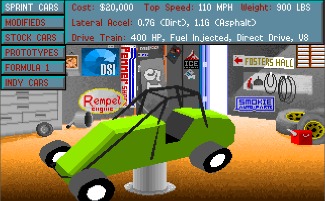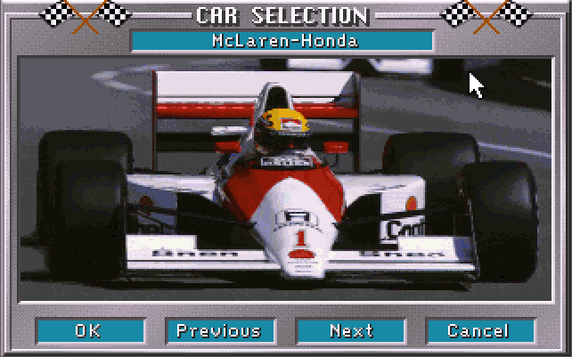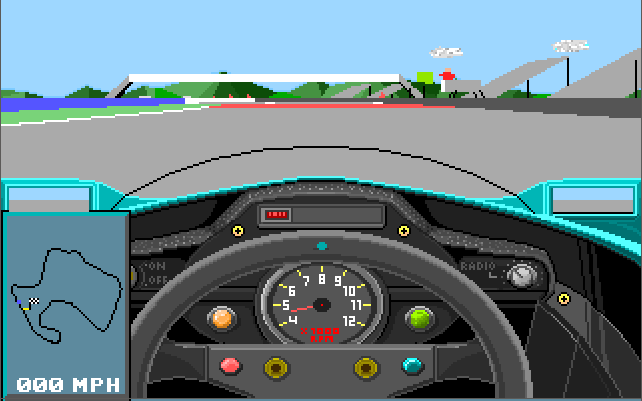 Developed by Distinctive Software and released in 1991, it differed from previous racing games in that it has a career mode that tracks Mario Andretti's racing career through six series, from sprint cars right through to Formula One and Indycar. Featuring 12 tracks, you race in just 1 car of each series. With sponsorship seed money to start you off, you must progress through up to three levels in each series, starting off with a Heat, followed by either a Consolation race if you finished behind the top 3 or the Feature race if you did. The better you do in each race, the more money you get.