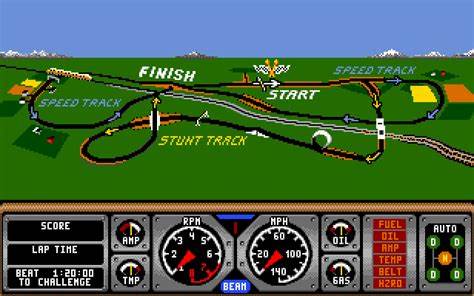 The game is similar in its design goals to 4D Sports Driving / Stunts, but fails to hit the mark even closely, with even the VGA graphics option only making use of 16 colours and no sound card support.