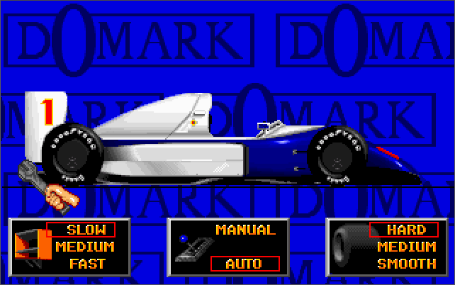 Don't expect this to be competing against Microprose's Formula One Grand Prix - this game from Domark is a fun F1 arcade racer, not a simulator. The game comes across as nicely polished with great in-menu music and good enough 256-colour VGA graphics, though selecting what you want isn't at all obvious unless you read the manual (more on that in a bit).
