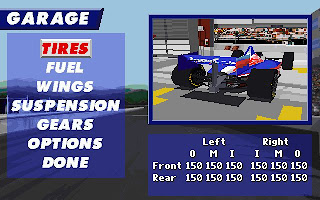 The same technical depth we'd come to expect after Indycar Racing was present in this title, with as many car setup options as you could think of: tyres pressures and stagger, fuel amount, front and rear spoilers, suspension, wheel lock, shock stiffness, and weight jacking.