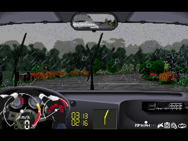 The game does require a pretty fast 486 or Pentium to get the best out of it. If you're running on a low-end 386 you can switch off weather effects on the windscreen, ground/road textures, and also disable any of the four sound channels independently using CTRL+F1 through F4 (the audio places a big burden on game speed).