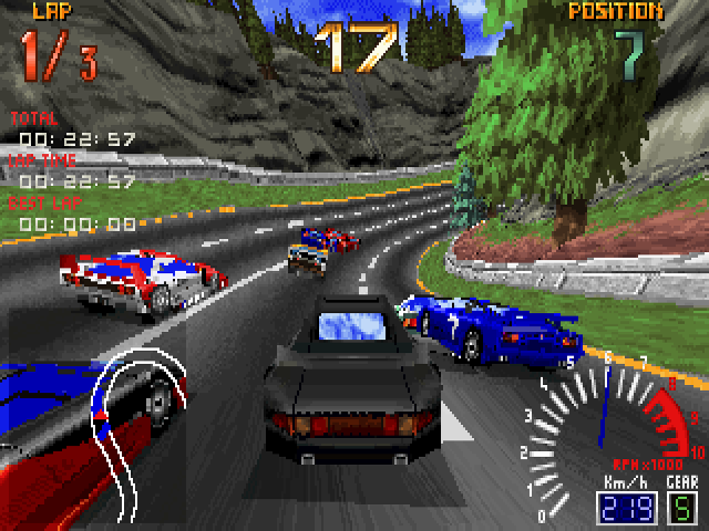 Gameplay: With a decent number of high-performance sports cars to choose from, and tracks of different types and difficulties, NFS has a lot to offer. The game modes are all there, plus you get to race on roads with other traffic and cops, like in Test Drive 1 and 2! Given that it's a Road & Track-sponsored title, the additional footage, spoken descriptions of the cars technical abilities/mechanicals and an intro to the track give this game a polish that is lacking in others. I found NFS a really tough game - there's no difficulty level you can choose, so I guess the idea is to race using slower cars on easier tracks first, and graduate up when you feel ready. 9/10