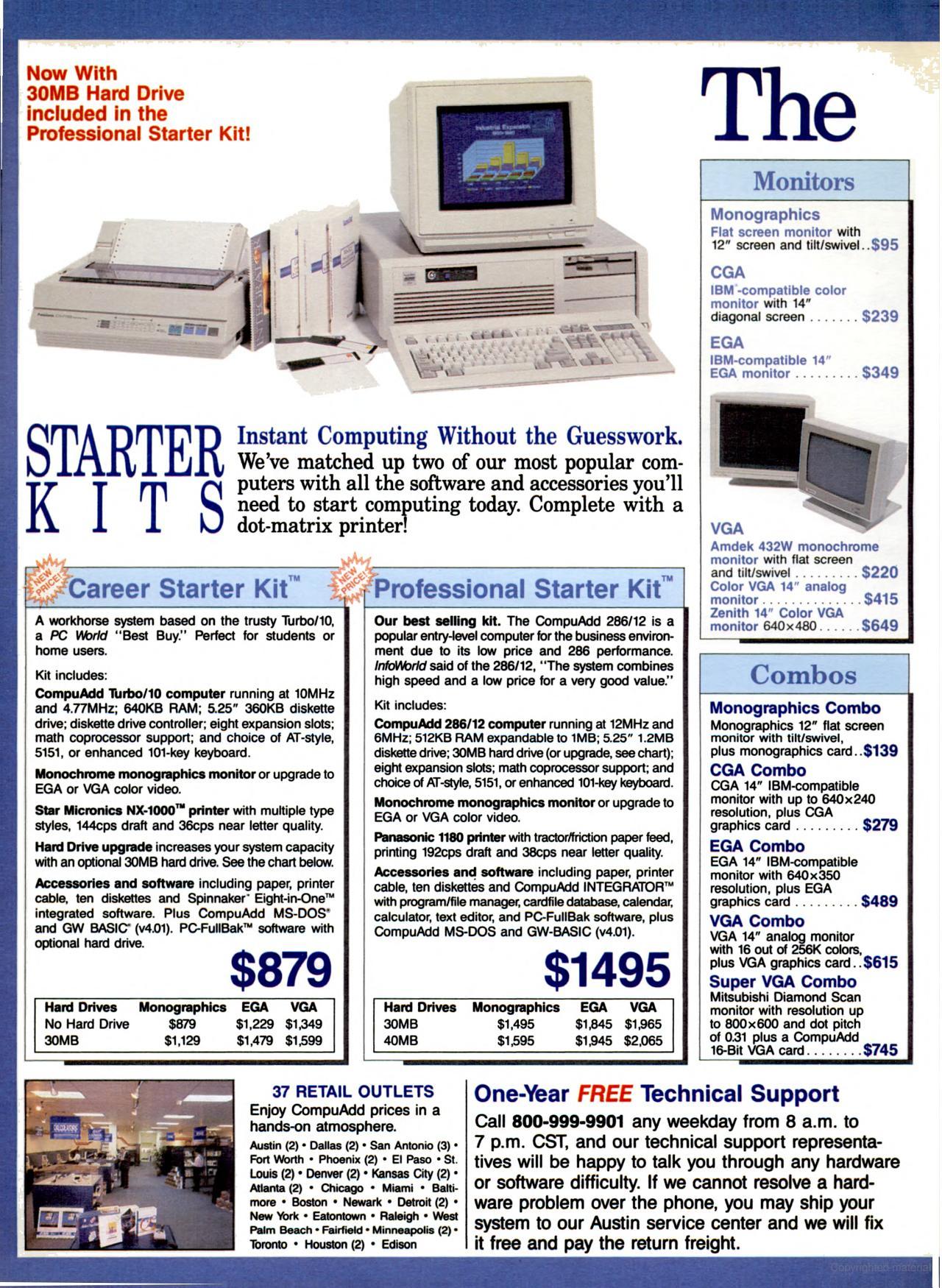 In 1988, CompuAdd opened its first retail stores. February 1988 saw the introduction of CompuAdd's new Standad 386/16 PC added to the range, at $1,795 without monitor.