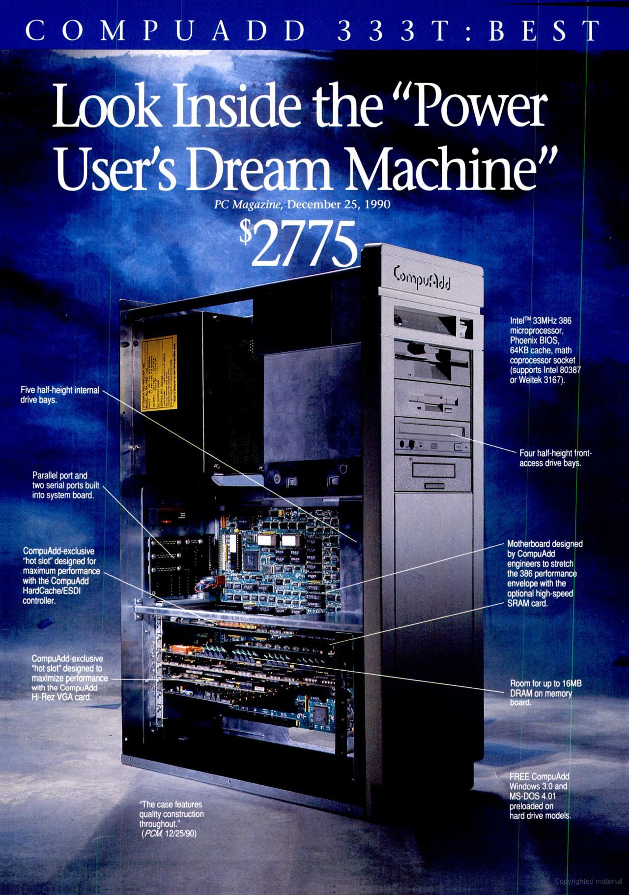 As with many PC-compatible manufacturers, their business model centered around a balance of price and performance, relying on a sheer quantity of sales at a lower unit margin. This was possible for CompuAdd and many others because the PC market was still made up of numerous manufacturers like IBM, Hewlett-Packard, Compaq, Zenith, and more, who still relied on their premium branding to charge a lot more for their PCs.