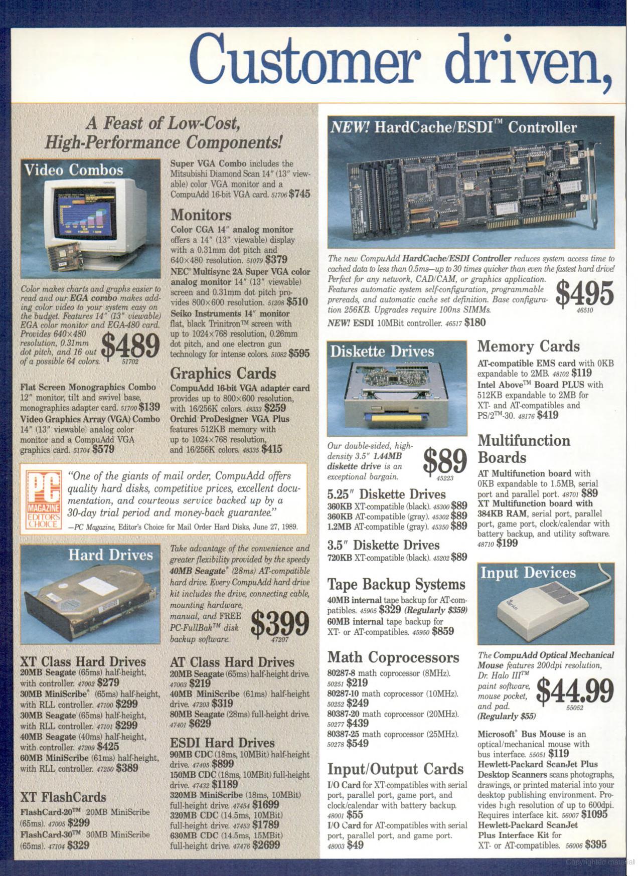 They also had their own branded hardware, including the HardCache ESDI Controller, VGA adapter and a mouse. These were not even rebranded per-se, just sold as the 'CompuAdd x'.