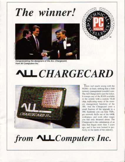 Other third parties were still designing and selling their own 'accelerator' drop-in replacement boards during the early 486 era. One such company was All Computers, Inc., who were also known for their Charge Card II for the 80286.