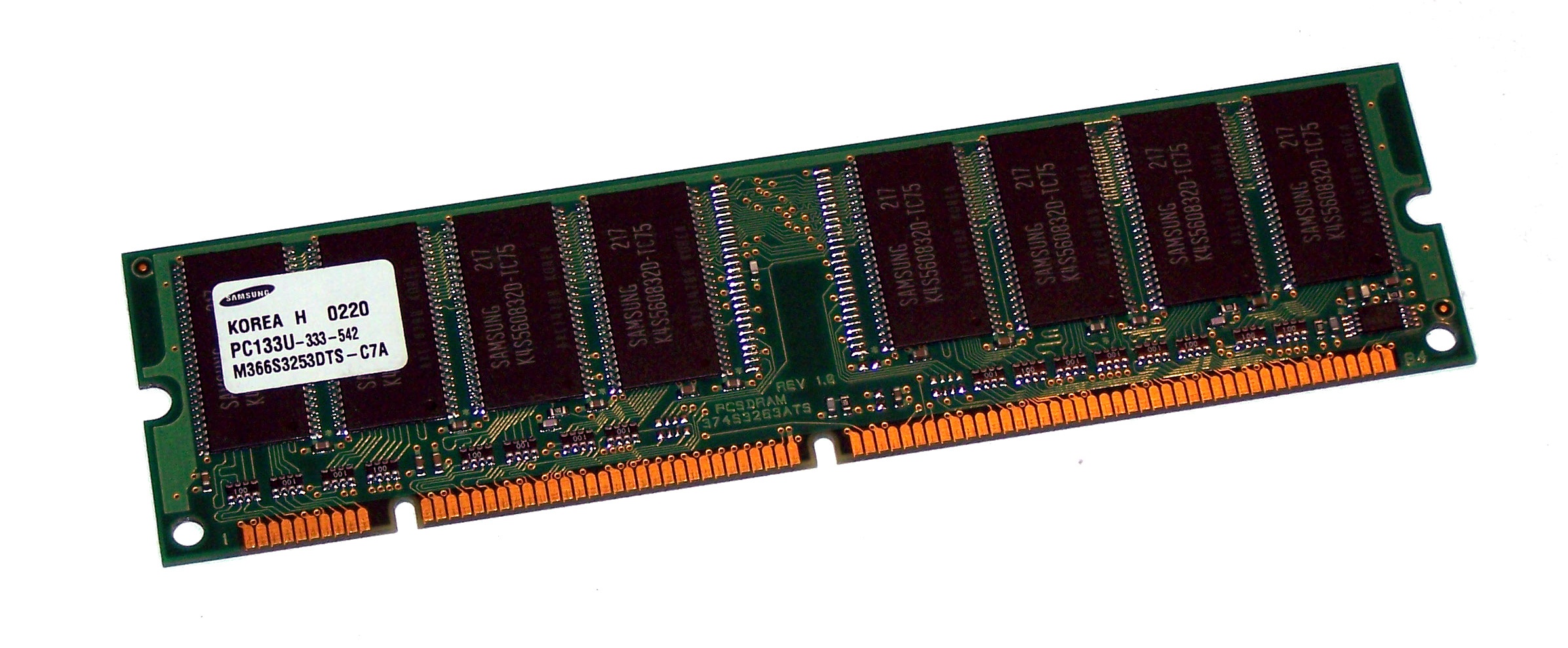 The first DIMMs had 168 pins, 84 on each side, so both sides' pins were not redundant as with SIMMs. They all have a "voltage-alignment key" notch which is used in a different location depending on the technology used on that memory stick. Initially the technology used with DIMMs was SDRAM (Synchronised Dynamic RAM) - this was significantly faster than FPM and even EDO RAM - if your Super Socket 7 motherboard's chipset supported SDRAM you had . With SDRAM the memory was synchronised with the system bus/clock speed, so it could run at faster speeds (up to around 133 MHz) than the older unsynchronised DRAM. A problem that was becoming more prevalent with DRAM was that the memory couldn't keep up with the demands being made upon it by the CPU. By running synchronously, it could queue up one instruction while processing another. This was later referred to a SDR (Single Data Rate) SDRAM when DDR (Double Data Rate) SDRAM arrived.