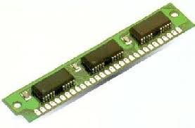 The first SIMMs (Single Inline Memory Module) had 30 pins (the same as the SIPPs they directly replaced), with either a tin or gold edge connector - this made them less prone to breaking than SIPPs. The edge connector contacts are redundant on both sides of the module (their opposite pin does the same thing). The physical size of a 30-pin SIMM is approximately 3.5 x .75 inches (about 9 x 2 cm). They are also 'keyed' to prevent insertion the wrong way around in a slot.