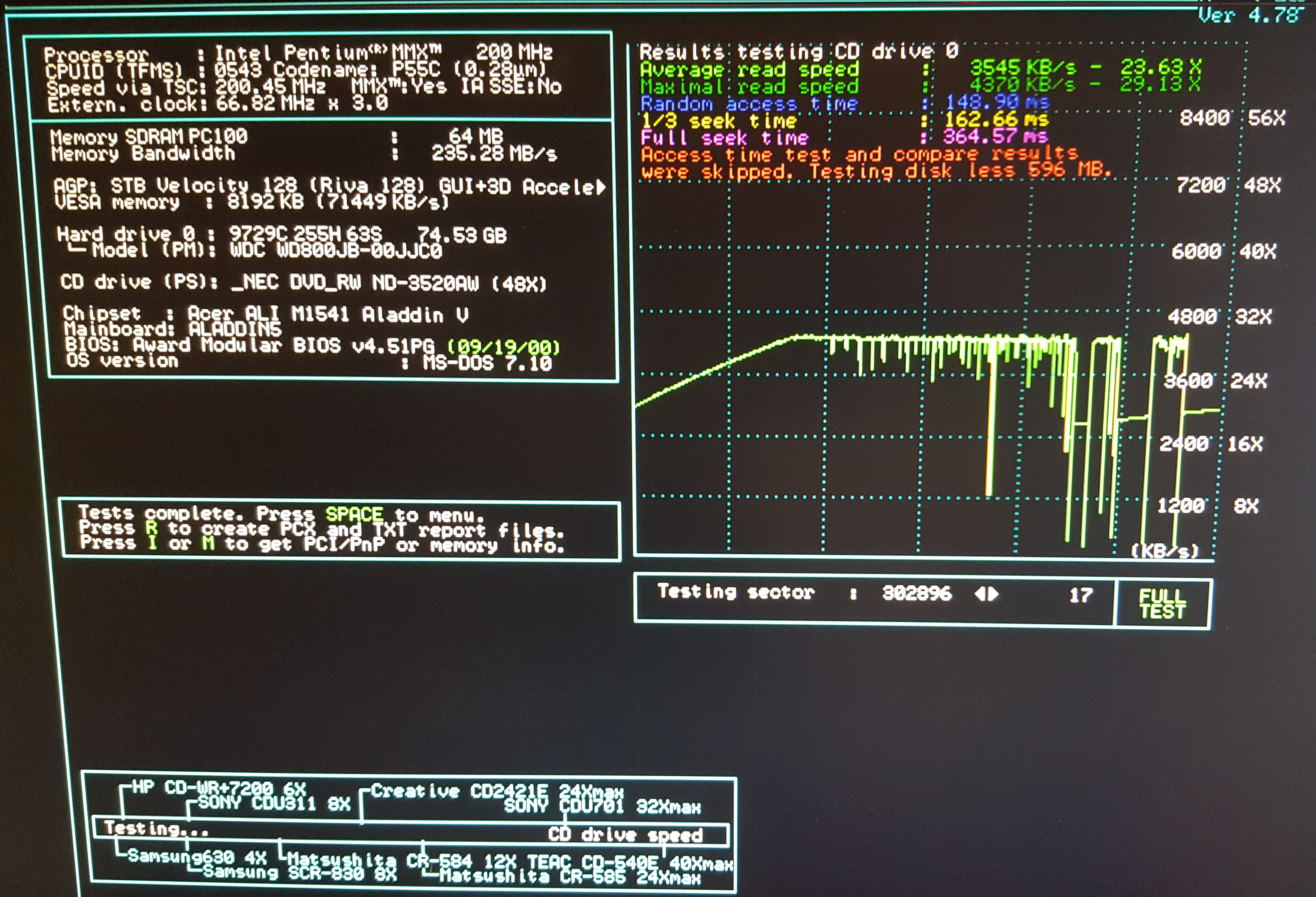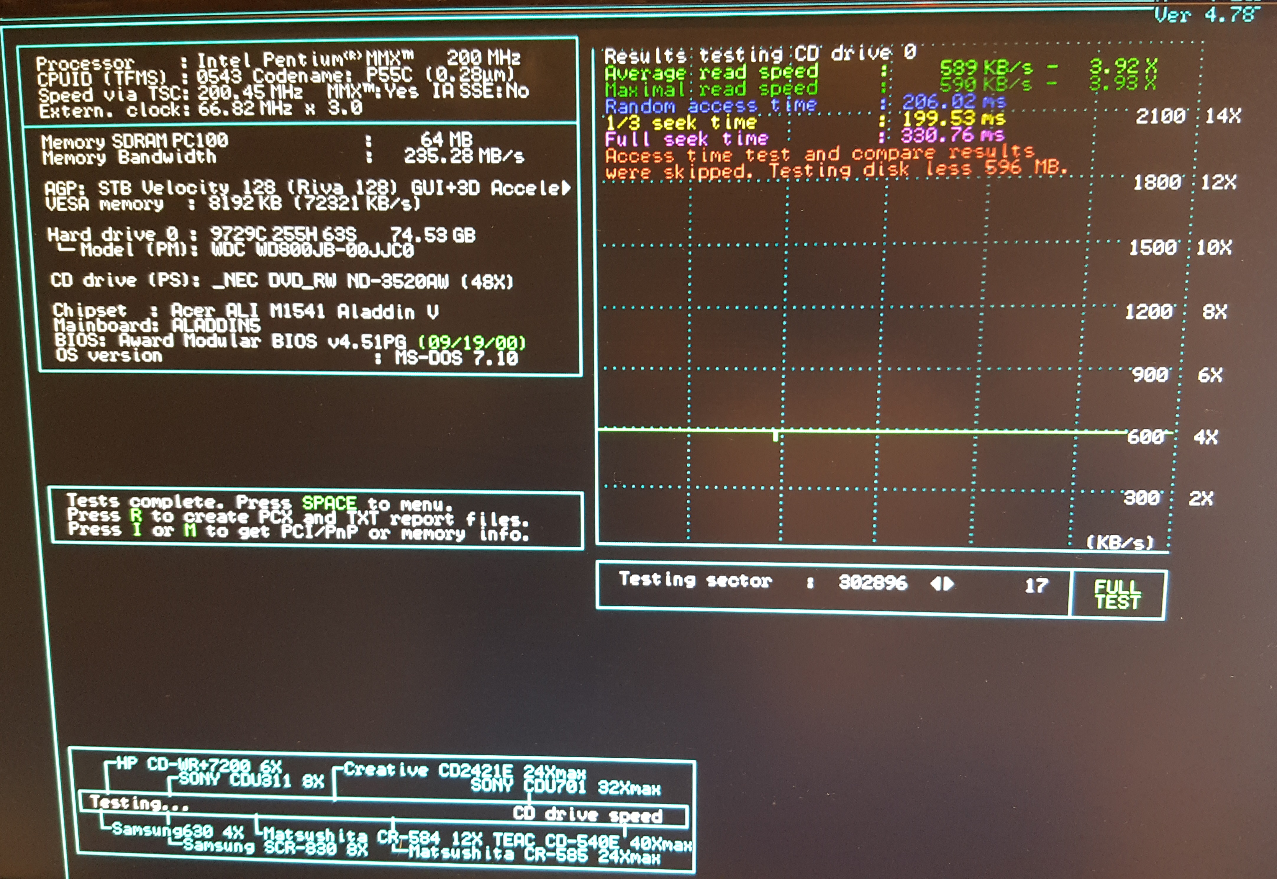 This means Port=1 (Primary), Device=s (Slave), Speed=600 (KB/sec). The readme file for CDBQ does caution that you will need to play with the -s option to get the desired speed, as these things aren't usually that accurate. Anyway, re-running SpeedSys gave me this: