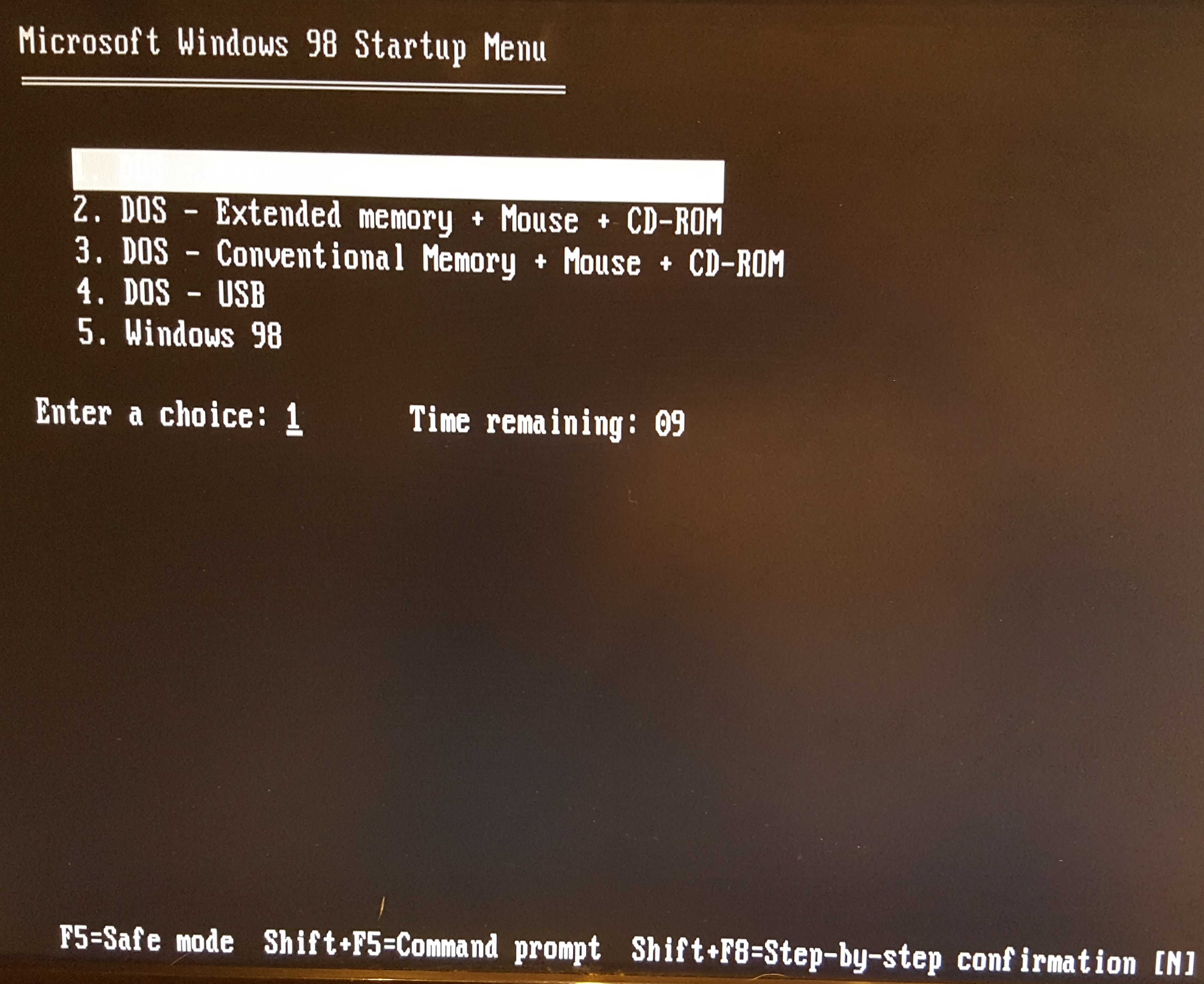 Anyway, I will do what I can to make DOS the default boot option (with all my nice boot menu choices for XMS, EMS, etc...