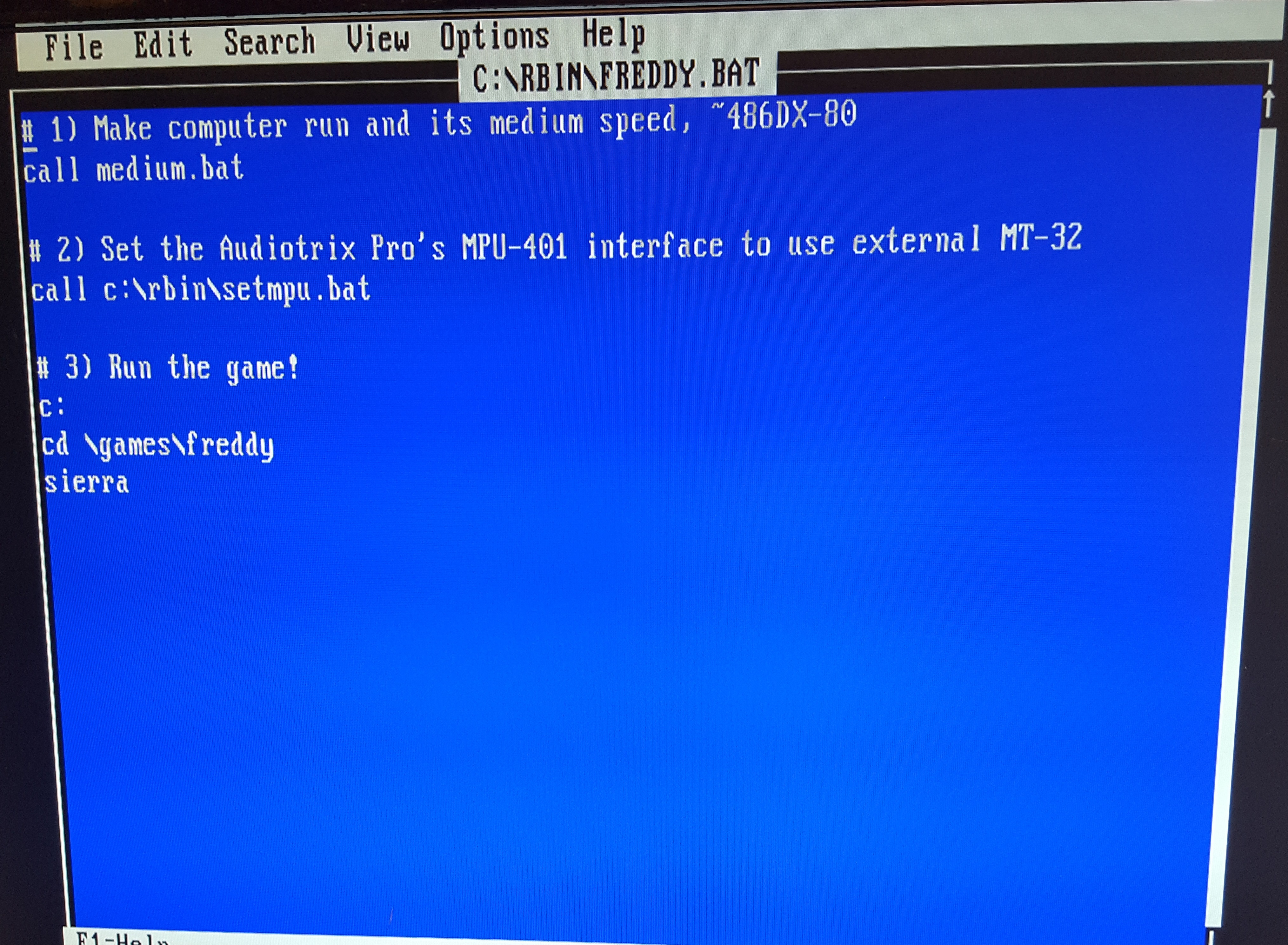 Anyway, to make my DOS gaming as easy as possible, I write a simple batch file for each game that will do 3 things: