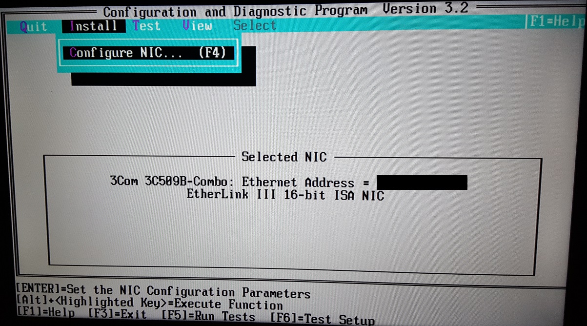 This one is able to run at 100/Base-T, meaning maximum theoretical throughput climbs to 12.5 MB/second. It uses the same packet driver as the previous PCI card I was trying, and fortunately this one did work with DHCP to be assigned an IP address on the network.