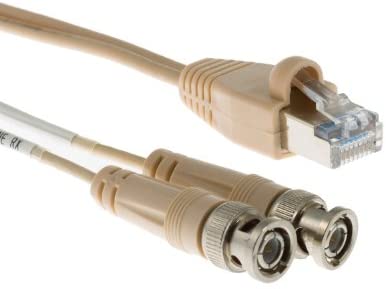 On the left, two BNC connectors, and on the right, an RJ45 Ethernet connector