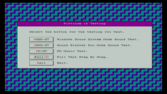 I ran P16TEST which allows you to configure different IRQs and DMA channels for your card via software and then test to make sure you are getting audio out. You can also change the left/right volume settings for these.