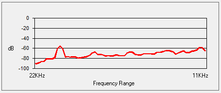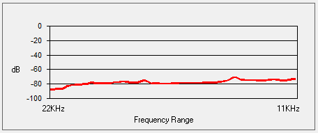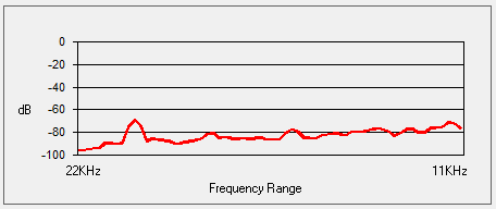 Given that I recorded the videos below in lossy MP4 format, I created separate recordings in .FLAC format. This allows me to check the card's frequency response and signal-to-noise ratio. I'm testing a signal-to-noise plug-in for Audacity which uses the ISO-226 curve for signal and ITU-R 468 curve for noise, the results of which are shown here: