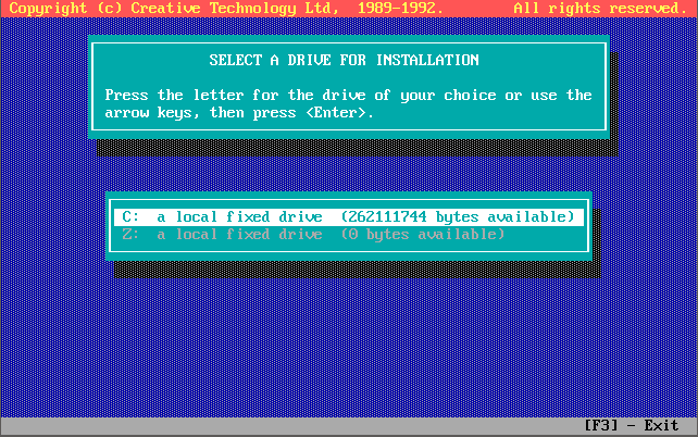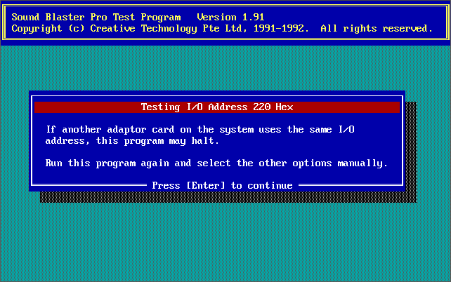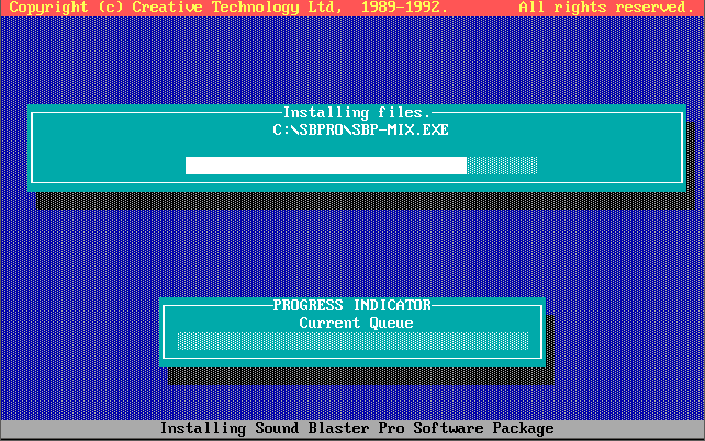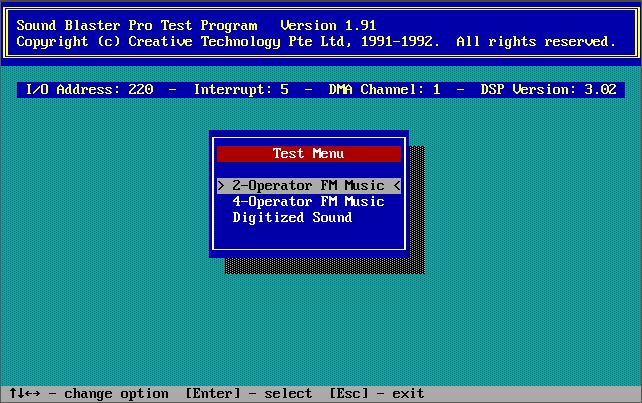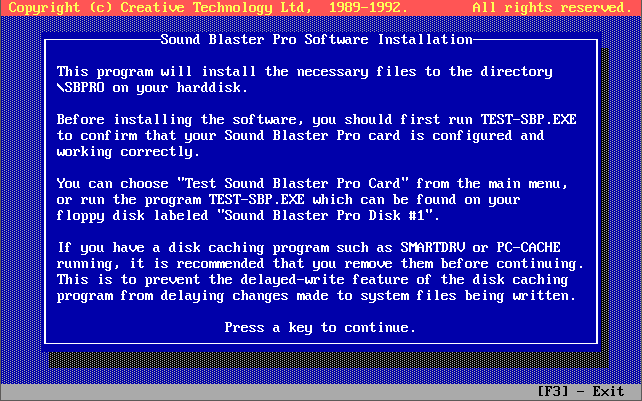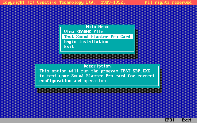 Running INSTALL from Disk 1 (Rev.1 onwards) takes you through these options, including running the TEST-SBP utility to test the card is configured properly and is outputting sound, both FM and Digital audio. It all pretty self-explanatory, taking you through testing the card on the I/O address, interrupt request line, and DMA channel, and if it's all good you can continue to install the files to your hard disk: