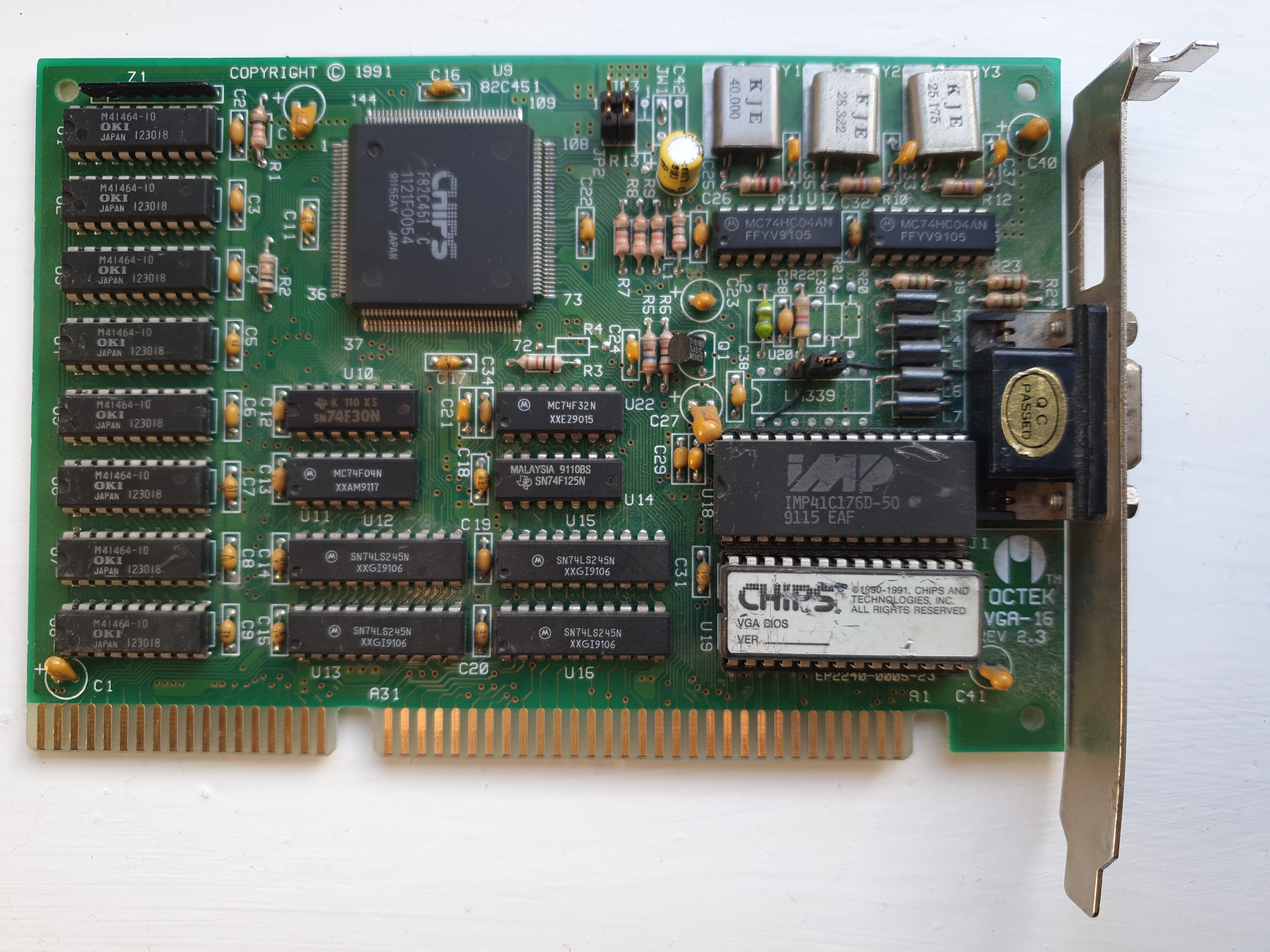 *This card is branded Ocean Office Automation (with the card's FCC ID I3XHK45V1120) - Ocean I believe acquired Octek around 1996, but the dates on the chips pre-date this, showing it's a 1991 card - odd. Maybe Ocean started off with a partnership to sell Octek's cards and bought them out later?