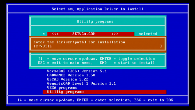 The Octek EVGA-16 (and its smaller brother, the EVGA-8) comes with a drivers & utilities disk. Jumping right into the utilities, let's do an install. This is done by running SETUP.EXE from the floppy disk: