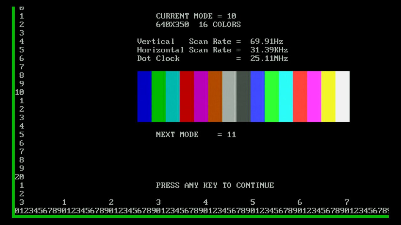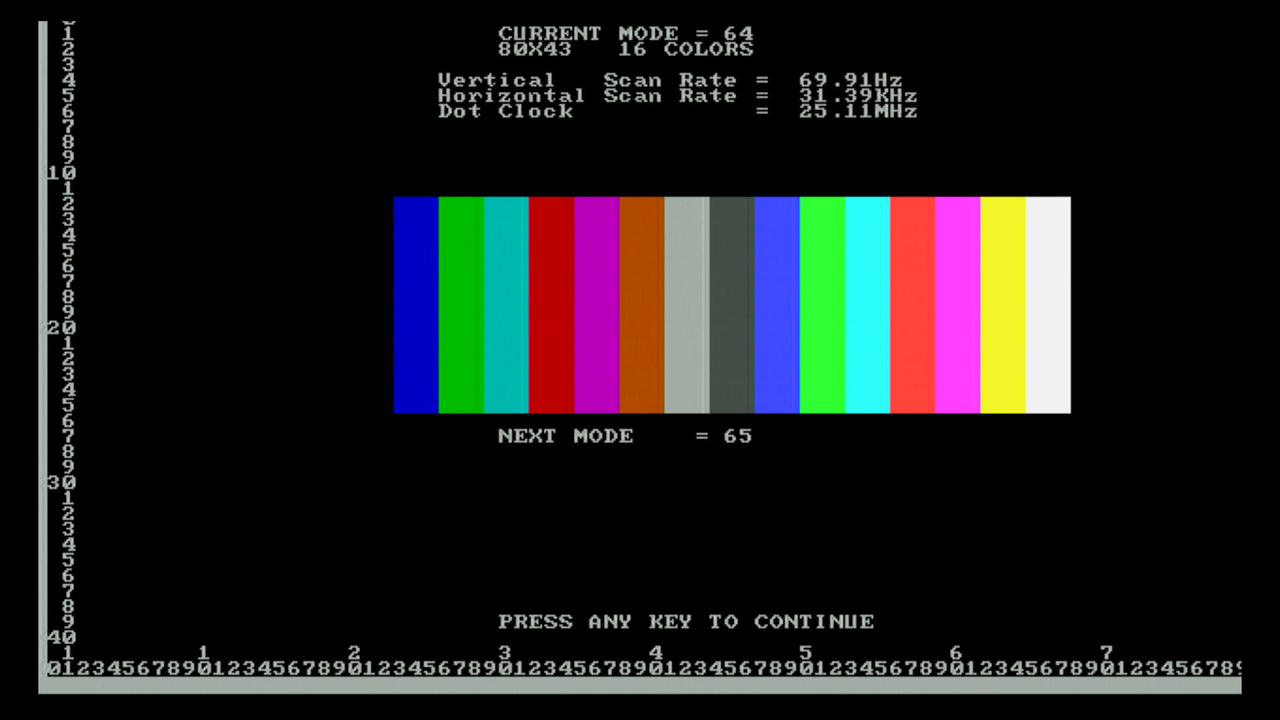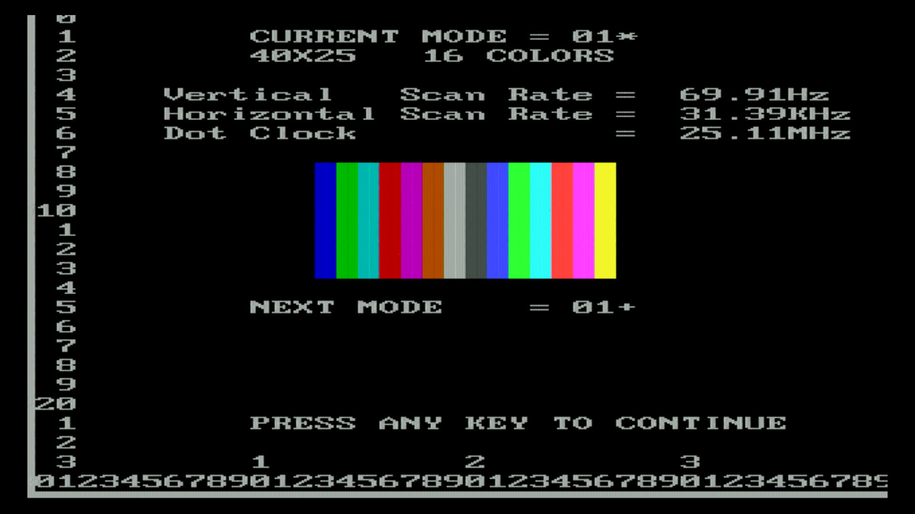 first, as I want to test the various video and text modes supported, plus the emulation of MDA, Hercules, CGA and EGA.