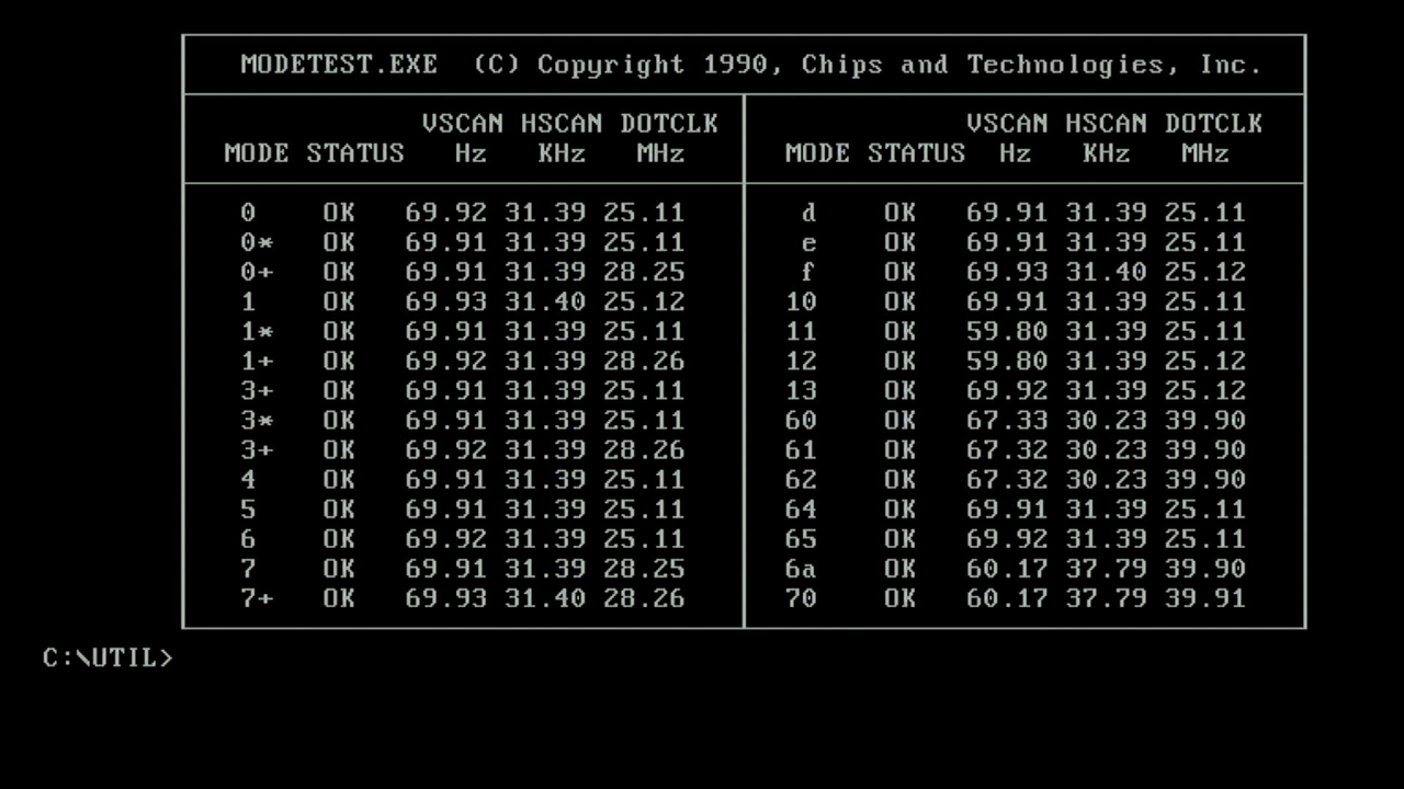 | MODETEST.EXE | A full-featured program that takes you through the various text and graphics modes the card supports. |