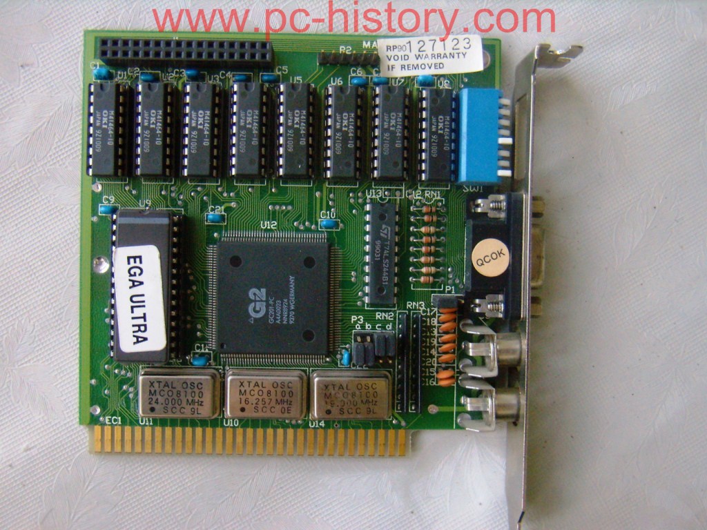 - pc-history.com - An unknown "EGA Ultra" card with 8 DIP switches and 3 crystals