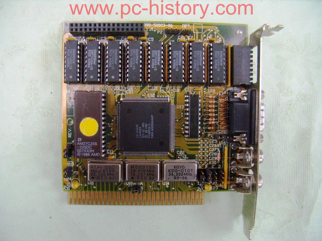 - 256 KB of video memory in eight 64k x 4 DRAM chips (socketed)