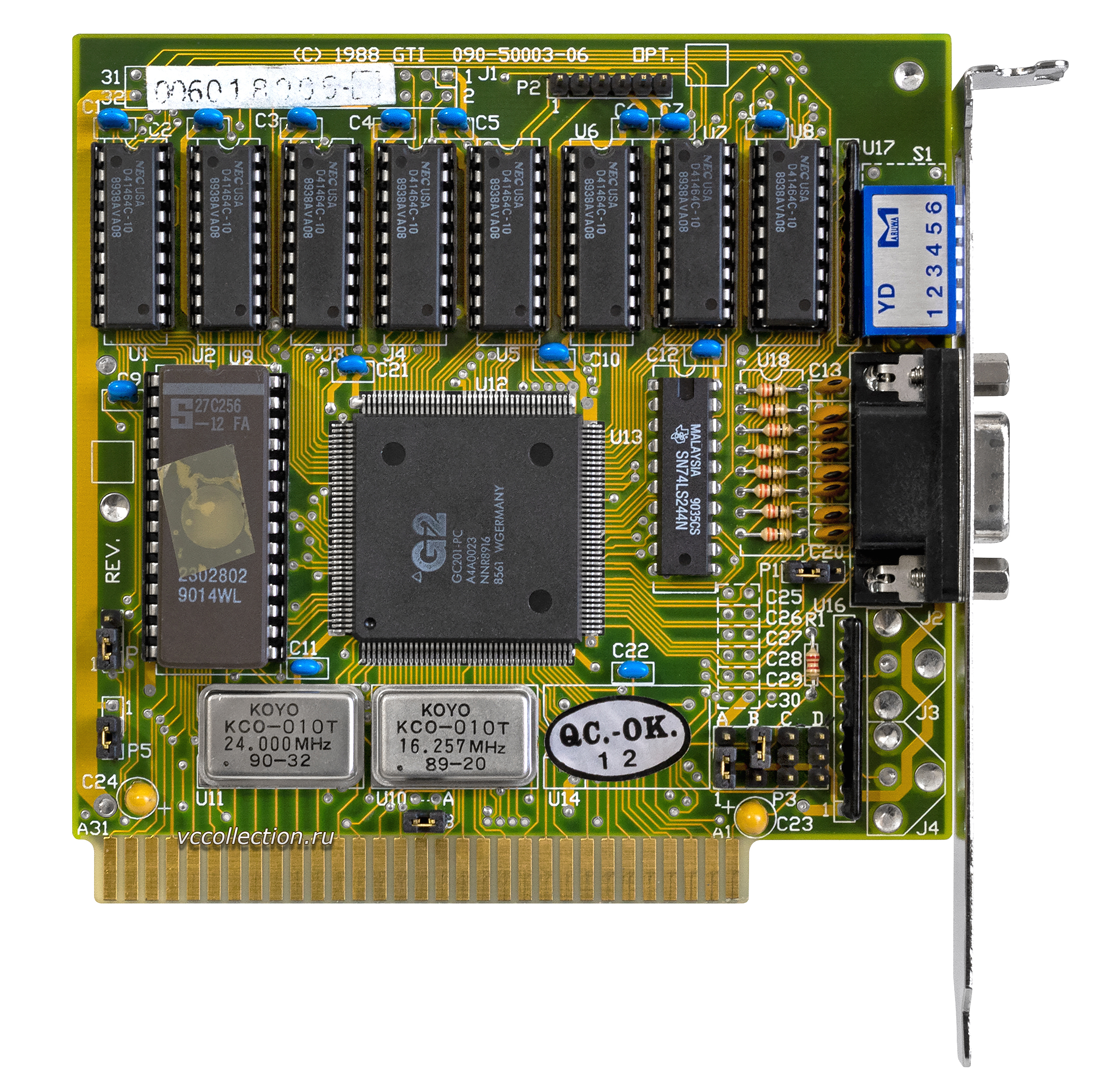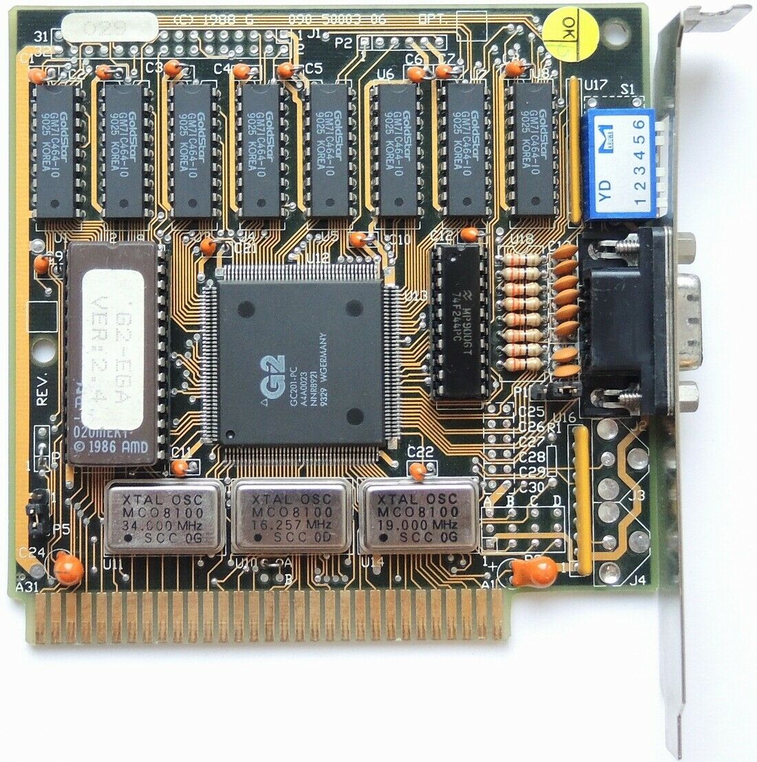- MinusZeroDegrees.net - an EGA card with very similar layout, a G2-branded GC201, and 6 DIP switches