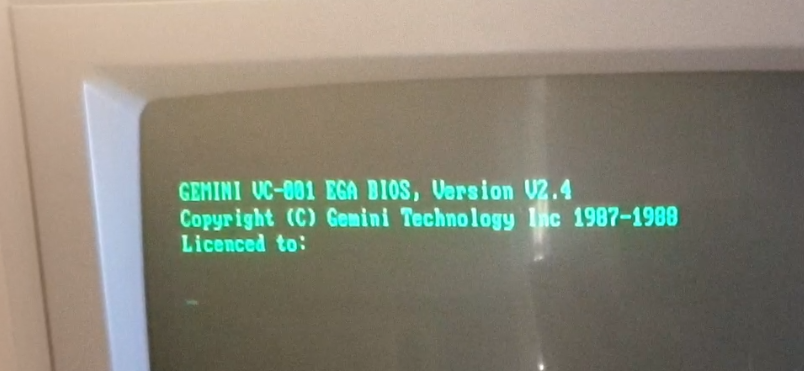 It works! And look, there's the EGA BIOS copyright display on boot-up.