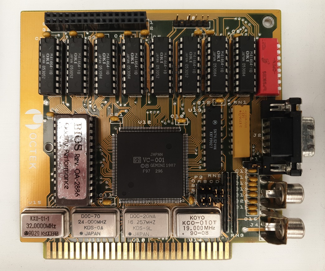 EGA cards are getting pretty rare these days, so when this little beauty came up at auction I put in a best offer which was accepted. Octek as a brand was more famous for their XT and 286 motherboards than expansion cards, but this is where, like so many PC hardware companies, they started - AST was another such company who made their early money in expansion cards for the PC before moving into deeper waters. A Chicony-branded card with the Gemini VC-001 was used in "luggables" including the Data World Portacomp II 286-16 and 386-20, Micro Express Lyte-Byte 3400 and Regal 286/SX/II and Hyundai's Super-LT3.