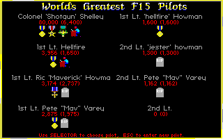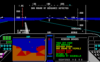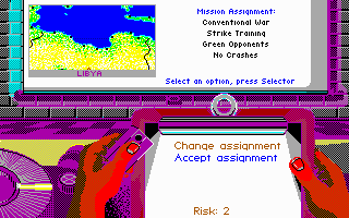 From the Microprose team, F-19 Stealth Fighter was the last flight simulator Sid Meier worked on. It is an interesting title to check out in EGA. I say this because many of the missions are set at night (you are, after all, trying to remain undetected in your stealth fighter!), meaning the colour palette while you are airborne is often dark. They did actually put in a good number of daytime missions too, possibly for the reason that the solid black sky might be offputting to some. The gameplay however really helps come to the rescue in this easily-accessible flight simulator. EGA is the highest graphics option, despite the box sticker and startup screen claiming to offer you a VGA/MCGA option - they're all in 16 colours.