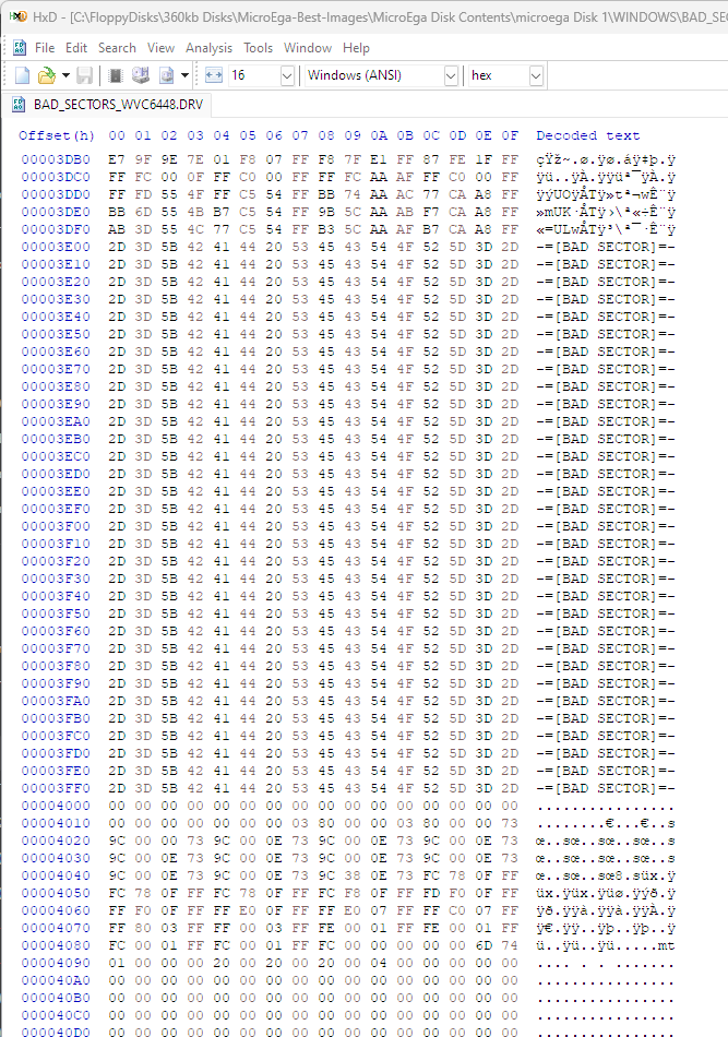Bad Lotus 1-2-3 132-column text mode driver file (LOTUS\LT132M.DRV) and the 640x480 driver file (LOTUS\LG64X48.DRV). Also bad Windows 1.x 640x480 driver (WINDOWS\WVC6448.DRV) and Windows 2.x 640x480 driver (WINDOWS\W2VC8060.DRV).