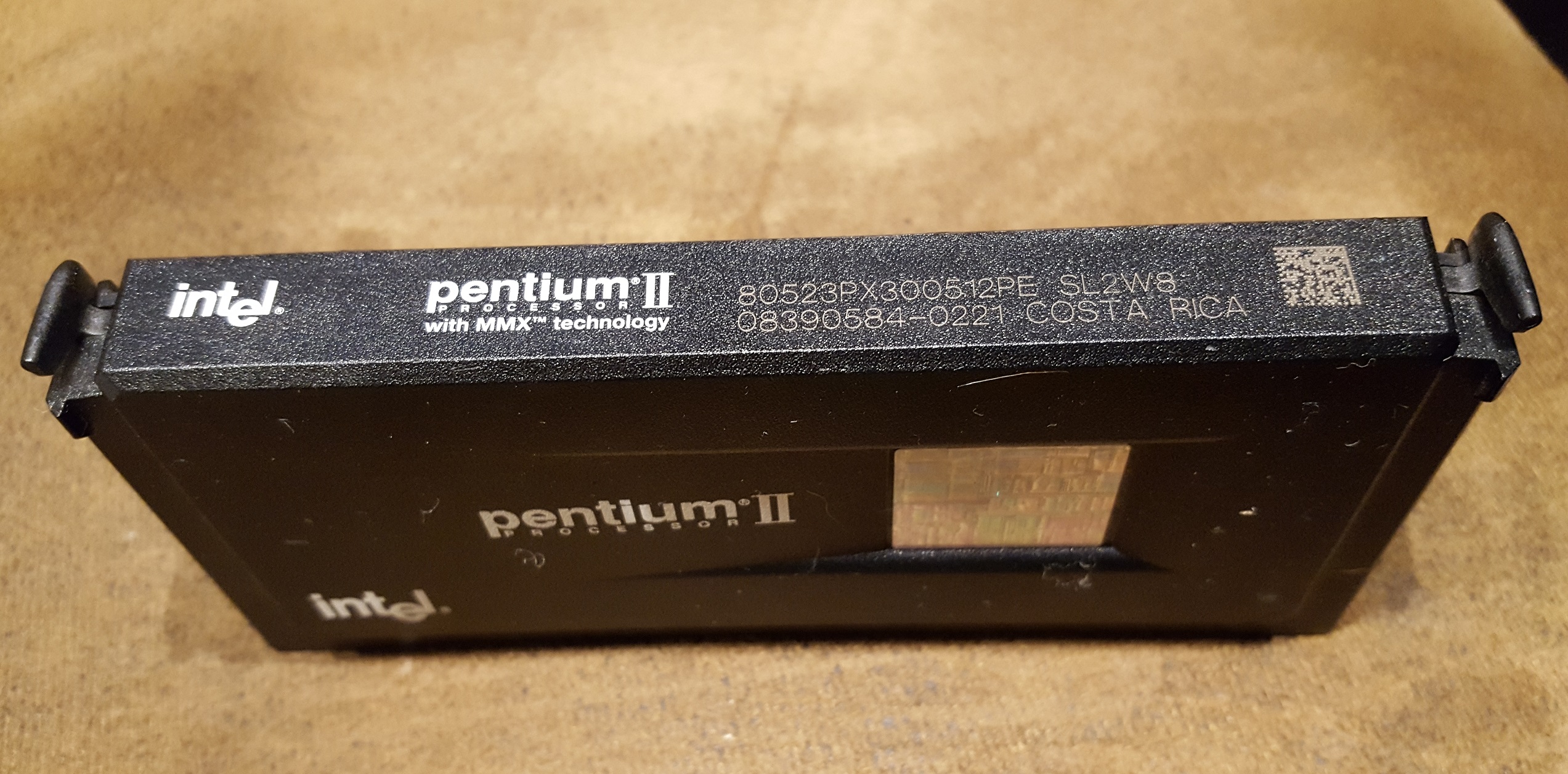 For my initial round of testing, I will use a Pentium II 300 (sSpec = SL2W8). This is part of the second iteration of PII processors with the "Deschutes" core which used the new 0.25 micron process, making the die size smaller. Incidentally, the PII-300 as shown above was renowned for being an overclockers dream, with up to 450 MHz stable in many cases.