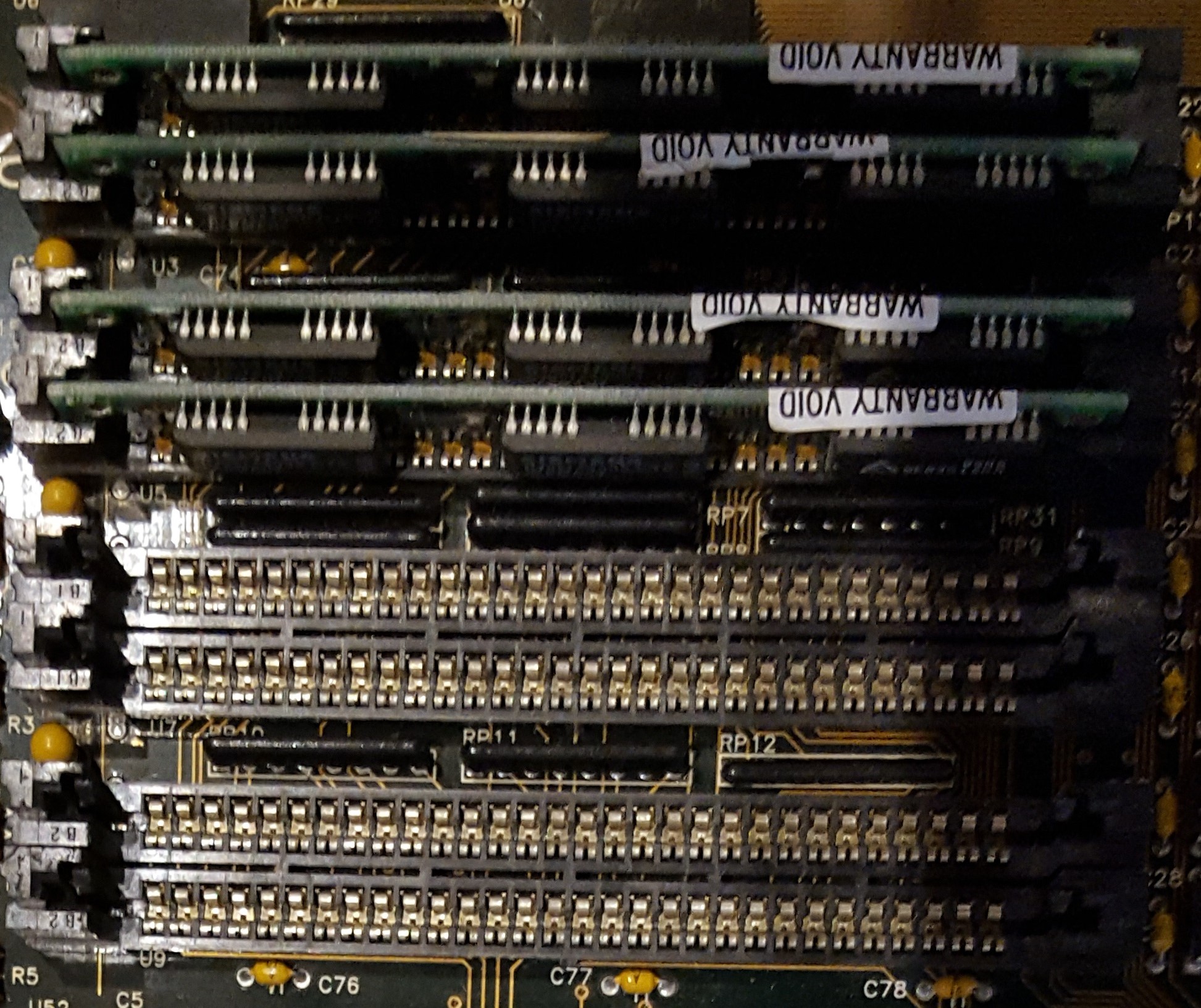 - Twelve 256 Kbit DRAMs for main memory, and two rows of holes above that could be for SIPP headers.