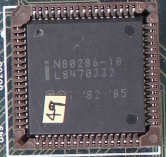 The 80286 CPU started off in clock speeds of 4, 6 and 8 MHz. Intel's versions of these later went up to 12.5 MHz, but authorised third parties like Harris Semiconductor managed to reach speeds of up to 25 MHz! So the 10 MHz variant I have here in Intel form was quite common for early 286 PCs.