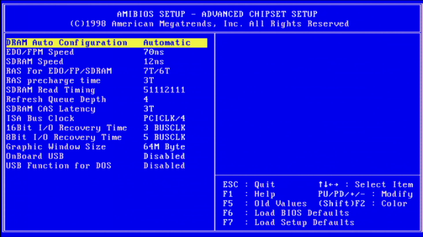 In 1998 Intel was dominating the chipset market with an 80% share, the Pentium II was the new premium kid on the block in its weird "Slot 1", so mid-range PCs tended to come with a fast Pentium MMX or an AMD/Cyrix/IBM instead such as AMD's rival, the K6-2, all of which leveraged the "Super Socket 7". Memory-wise a typical PC came with 32 MB or 64 MB of SDRAM using the new 168-pin DIMM slot which ran at the same speed as the Front Side Bus.