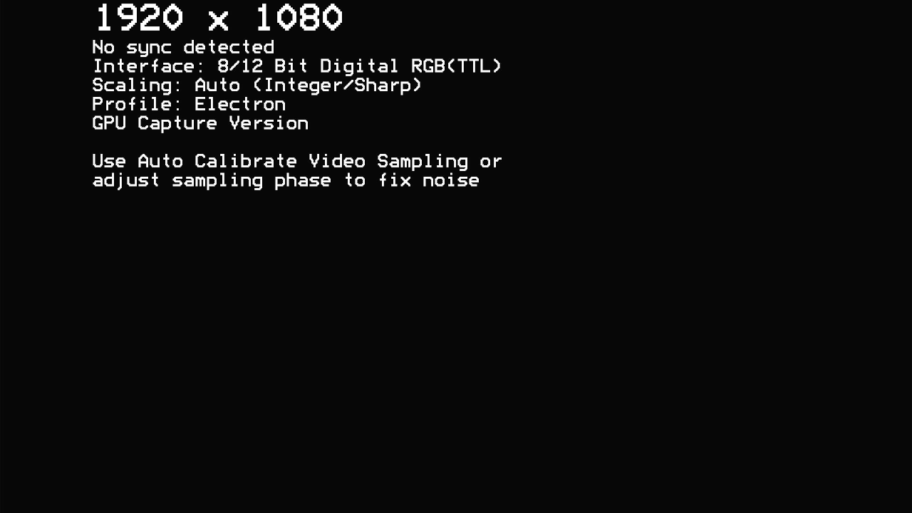 I played with some of the RGBtoHDMI's settings, including switching from integer scaling to interpolation as well as changing the resolution. The former showed very little change - the quality was still really good with interpolation scaling compared with the pixel-perfect integer scaling, though my testing was far from exhaustive. Changing the resolution was easy - I've been running in 1920 x 1080, (since that's what my Full-HD monitor defaults to), and that is why we have the two large black bars down each side of the converted image. By making the resolution 640 x 480, say, this stretches out the image on the monitor to fill it. Setting it to 'Auto' most likely talks to the monitor via its DVI or HDMI protocol to request its native resolution, and sets it accordingly. In my case, this chose 1920 x 1080 at 60 Hz. Each resolution change requires a reboot of the RGBtoHDMI, unlike most other settings that it can handle on-the-fly.