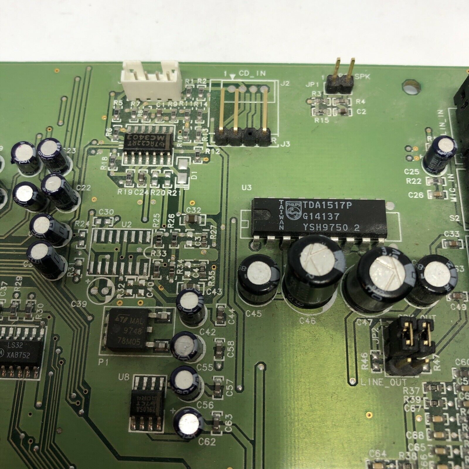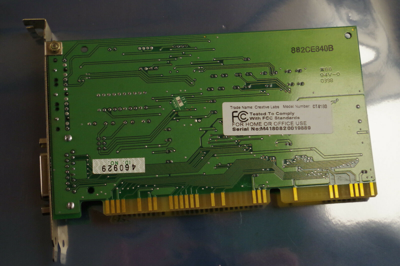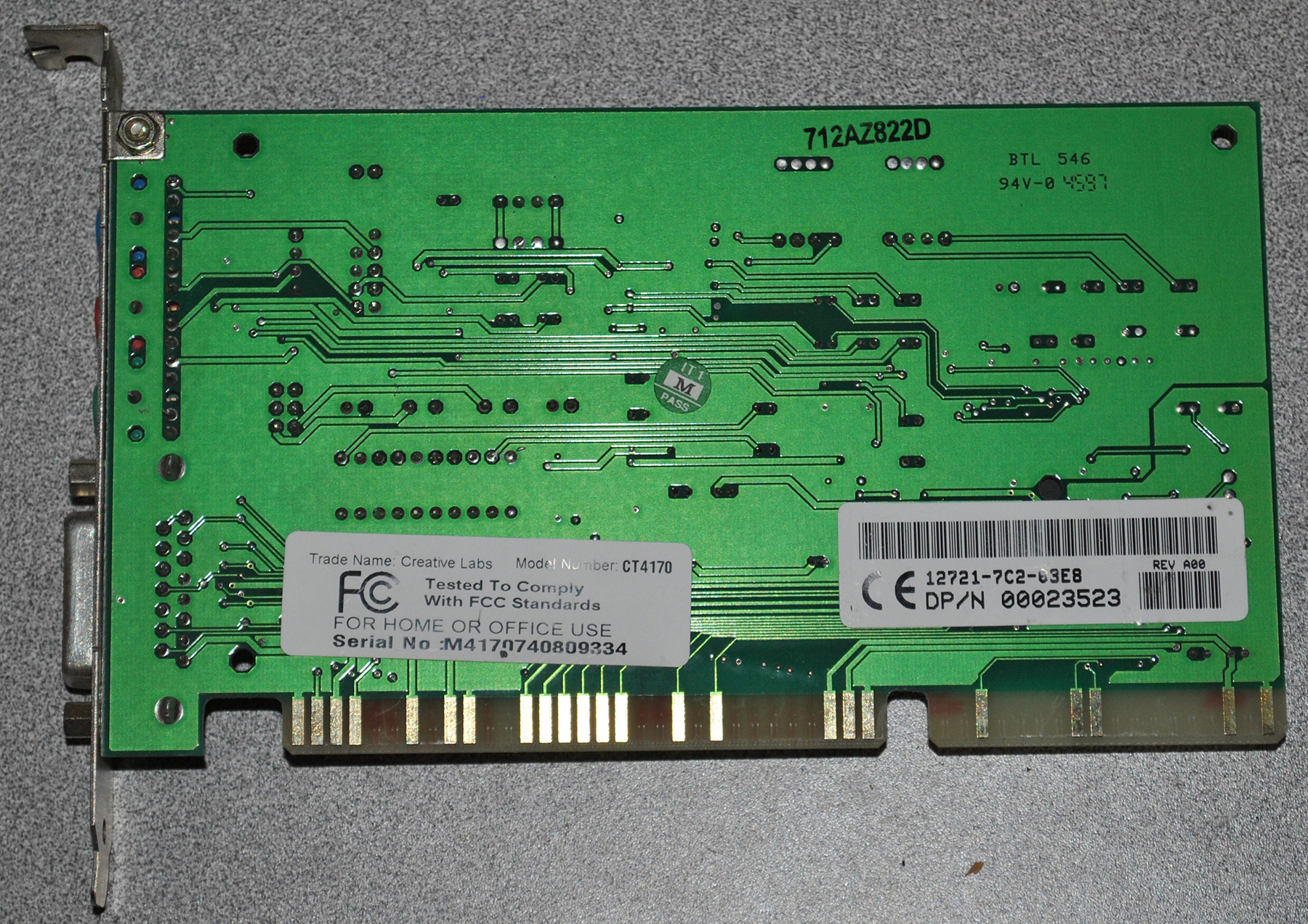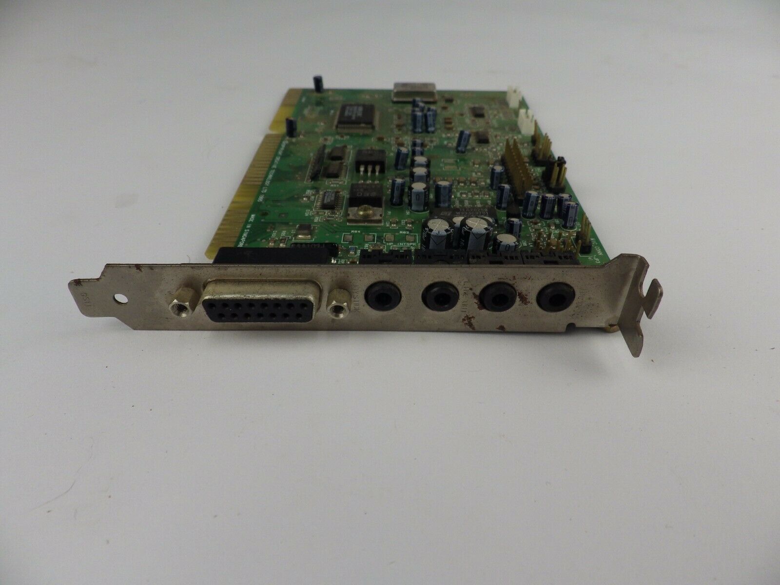 The CT4810, or to give it its full title, Sound Blaster ViBRA 128, was based around the Ensoniq AudioPCI chip, ES1373. ES1373 was a slightly updated version of their earlier ES1371, adding I2S In or S/PDIF Output (the blue Line-In and green Line-Out sockets double up to support these respectively).