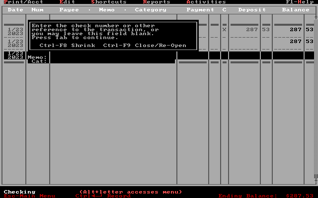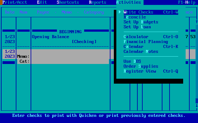 For this one, I'm going to just use Intuit's Quicken, which came out in 1984, though I'm testing Quicken 7.0 which is from 1993, and was the final version before they moved to Windows. Microsoft Money was only released for Windows, so I have to ignore that for this set of virtualisation checks.