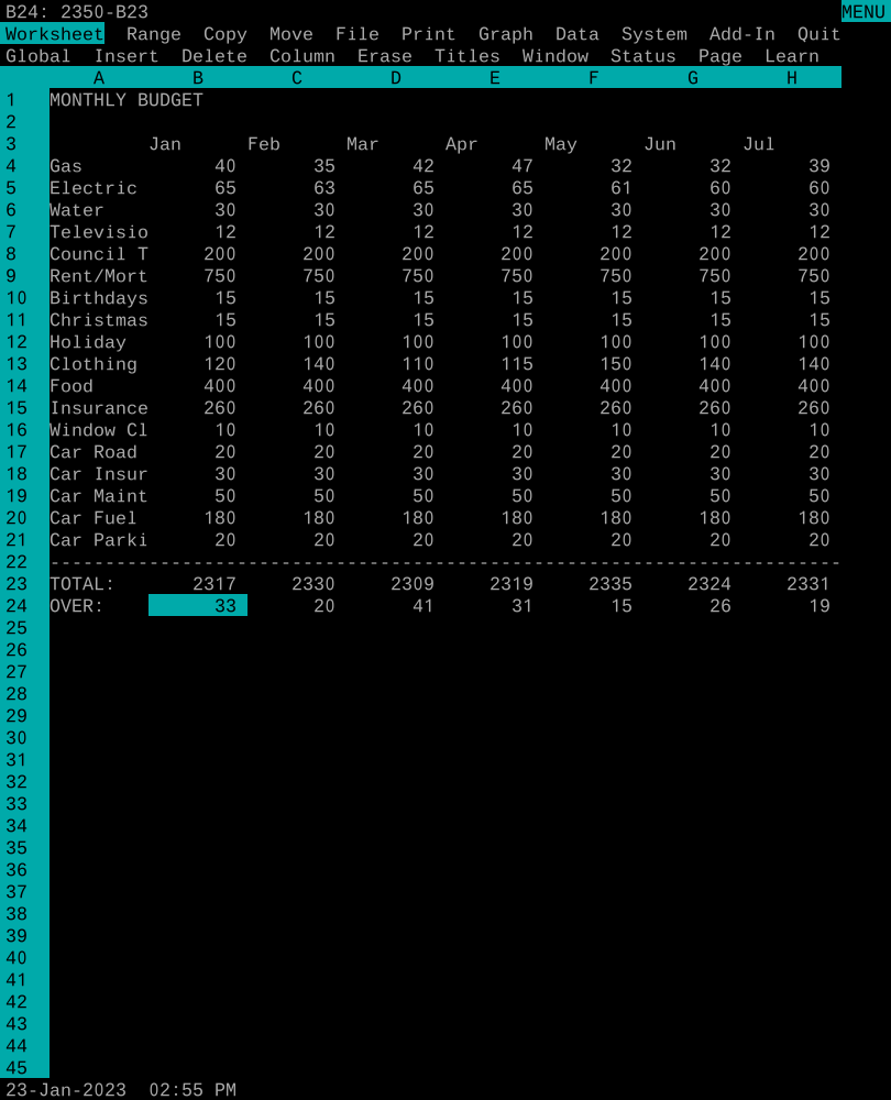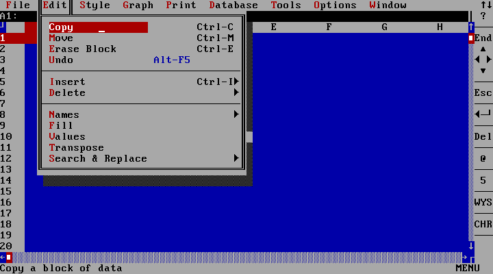 The kings of the spreadsheet world in the DOS era were Lotus 1-2-3 and Borland Quattro. I will test Lotus 1-2-3 Release 3.3 and Quattro Pro 2.0 here: