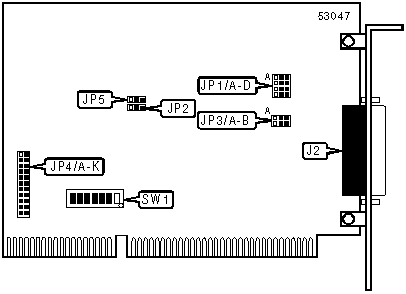 Note: A total of 128 base address settings are available. The switches are a binary representation of the decimal memory addresses. SW1/7 is the Most Significant Bit and switch SW1/1 is the Least Significant Bit. The switches have the following decimal values: SW1/7=512, SW1/6=256, SW1/5=128, SW1/4=64, SW1/3=32, SW1/2=16, SW1/1=8. Turn off the switches and add the values of the switches that are off to obtain the correct memory address. (Off=1, On=0)