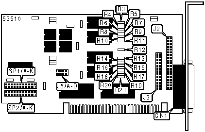 Note: Terminating resistors are usually only needed if the card is installed in systems using high baud rates. If terminating resistors are required, insert them into the listed locations. Size and type of resistor are unidentified.