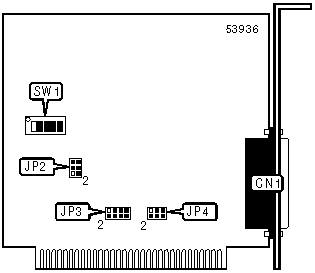 Note: A total of 32 base address settings are available. The switches are a binary representation of the decimal memory addresses. SW1/10 is the Most Significant Bit and switch SW1/5 is the Least Significant Bit. The switches have the following decimal values: SW1/5=512, SW1/4=256, SW1/3=128, SW1/2=64, SW1/1=326. Turn off the switches and add the values of the switches to 512 and convert to hexadecimal to obtain the correct memory address. (Off=1, On=0) | ||||||