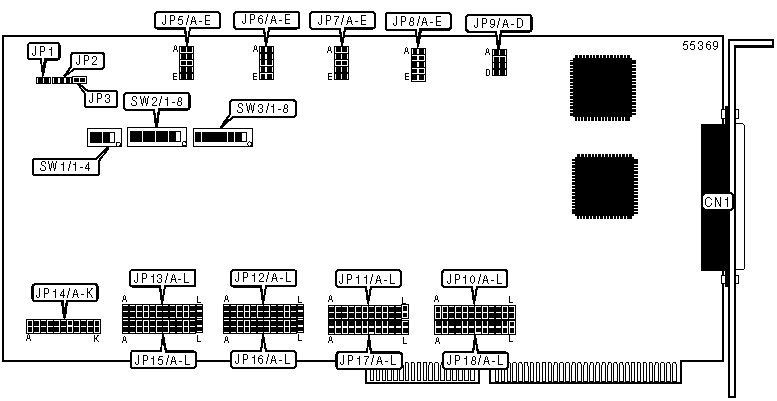Note: A total of 96 base address settings are available. The switches are a binary representation of the decimal memory addresses. SW1/7 is the Least Significant Bit, and switch SW1/1 is the Most Significant Bit. Turn off the switches and add the values of the switches to obtain the correct memory address. (Off=1, On=0). Low address settings will leave some ports disabled. Ports may not be assigned addresses below 100h.