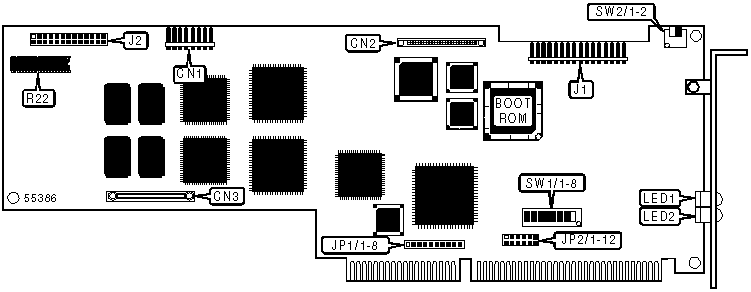A total of 255 base address settings are available. The switches are a binary representation of the decimal memory addresses. SW1/8 is the Most Significant Bit and switch SW1/1 is the Least Significant Bit. The switches have the following decimal values: SW1/8=32768, SW1/7=16384, SW1/6=8192, SW1/5=4096, SW1/4=2048, SW1/3=1024, SW1/2=512, SW1/1=256. Turn off the switches and add the values of the switches to obtain the correct memory address. (Off=1, On=0)