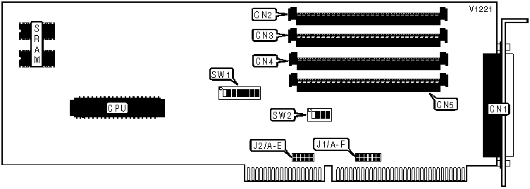 Note: A total of 255 base address settings are available. The jumpers are a binary representation of the decimal memory addresses. Switch SW1/1 is the Most Significant Bit and switch SW1/8 is the Least Significant Bit. The switches have the following decimal values: switch SW1/1=512, SW1/2=256, SW1/3=128, SW1/4=64, SW1/5=32, SW1/6=16, SW1/7=8, SW1/8=4. Turn off the switches and add the values of the switches that are off to obtain the correct memory address. (Off=1, On=0)