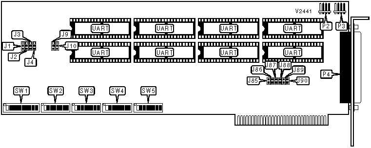 Note:When using the daisy-chain connectors, the board may only use one interrupt. Up to four boards may be daisy-chained. Daisy-chaining boards to operate as one unit will only function under MS-DOS and compatible operating systems.