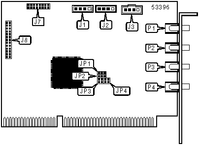 Microphone jack, Line in, Line out, Speaker connector, Game/MIDI port (internal), Wave table |